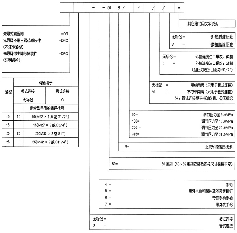 DR  50B/型50系列压力控制阀是先导式减压阀,用于系统减压。