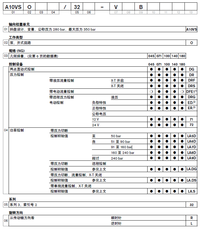 力士乐A10VSO32系列柱塞泵型号如下(型号众多无法一一列出更多联系客服部分有现货):